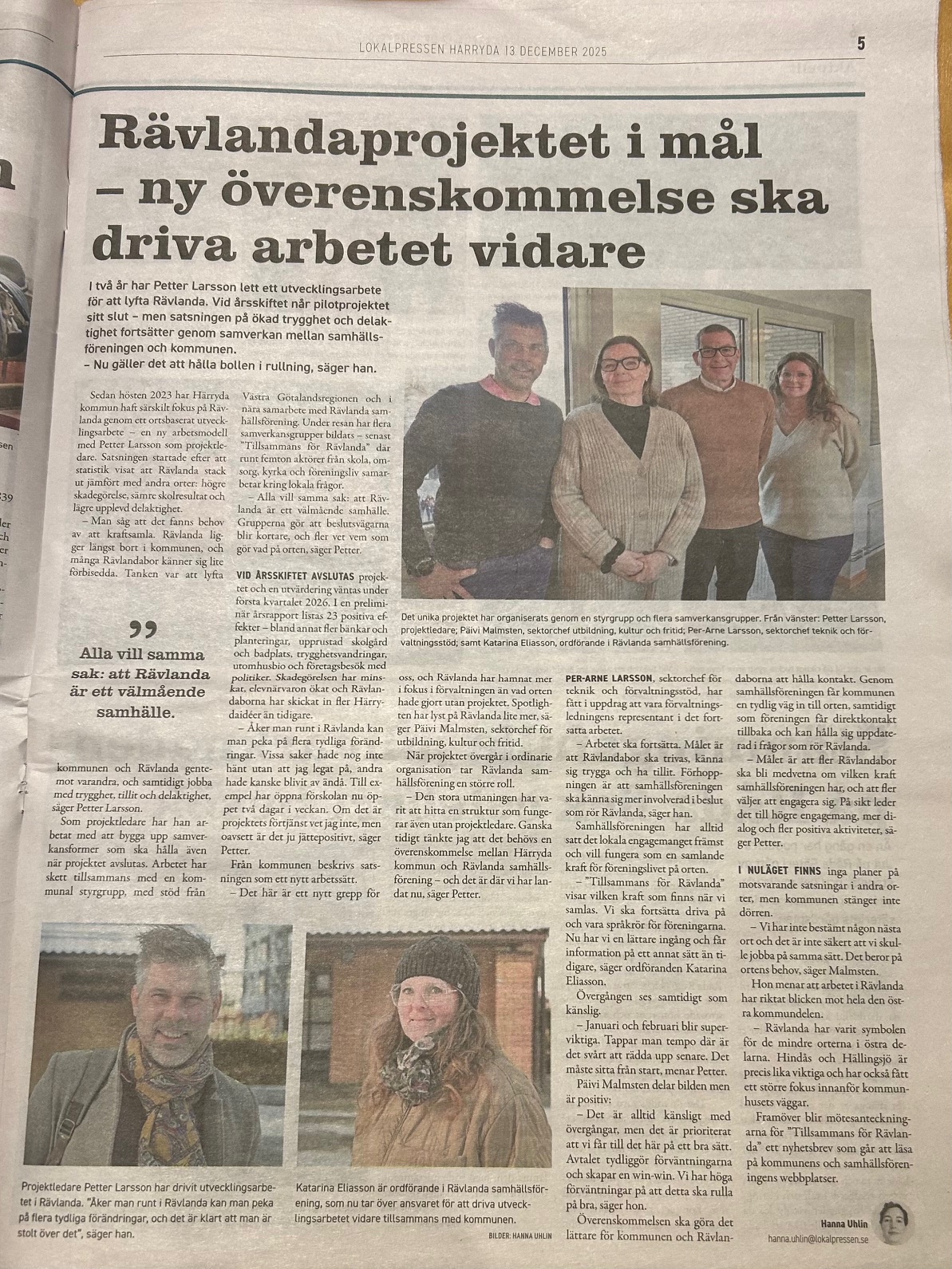 Vi, Rävlanda Samhällsförening har ingått en överenskommelse med Härryda kommun. Den innebär bland annat att förvaltningen/kommunen kan rådfråga oss i olika frågor, vad vi i Rävlanda tycker. Vi i Samhällsföreningen får en direktkontakt till förvaltningen och kan ge dem input om saker vi tycker är angelägna.